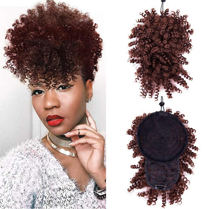 Offre Spéciale Synthétique Bouclés Frange Frange 11 Couleur Cheveux Frange Clips Sur Afro Puff Cheveux Chignon Avec Frange