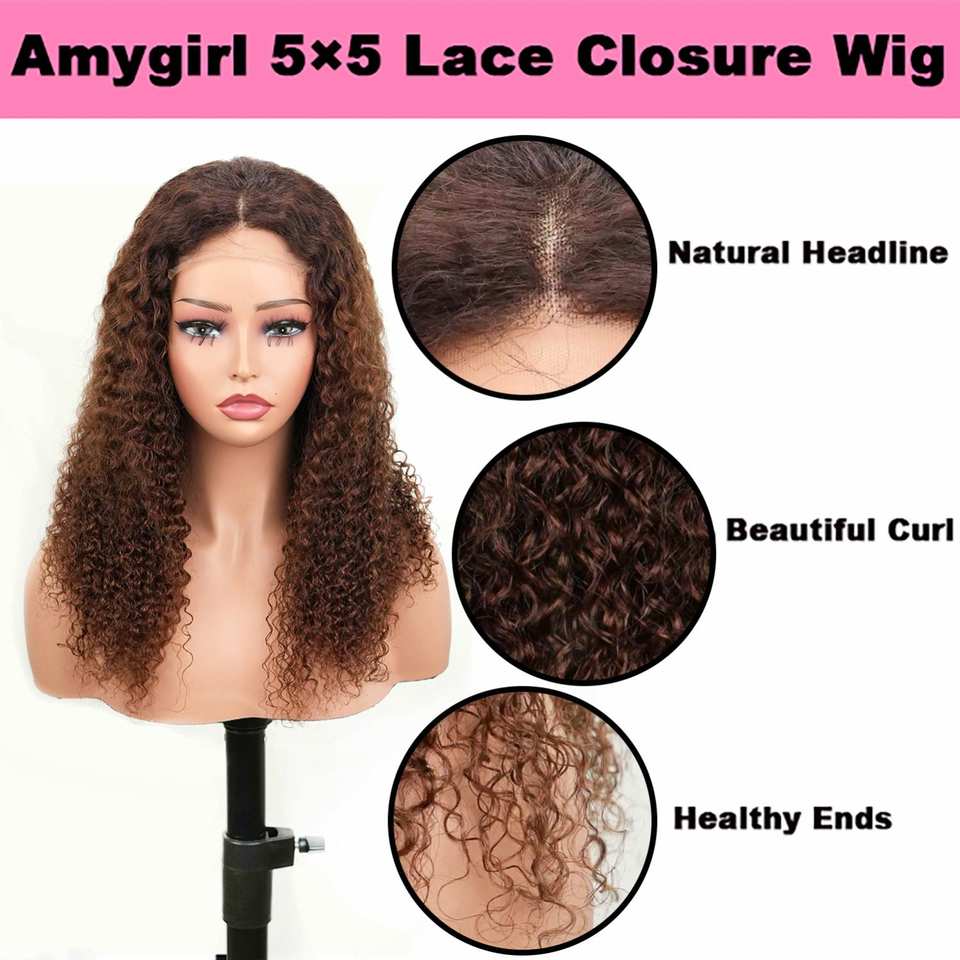 Bob Afro bouclé avec fermeture en dentelle 5*5