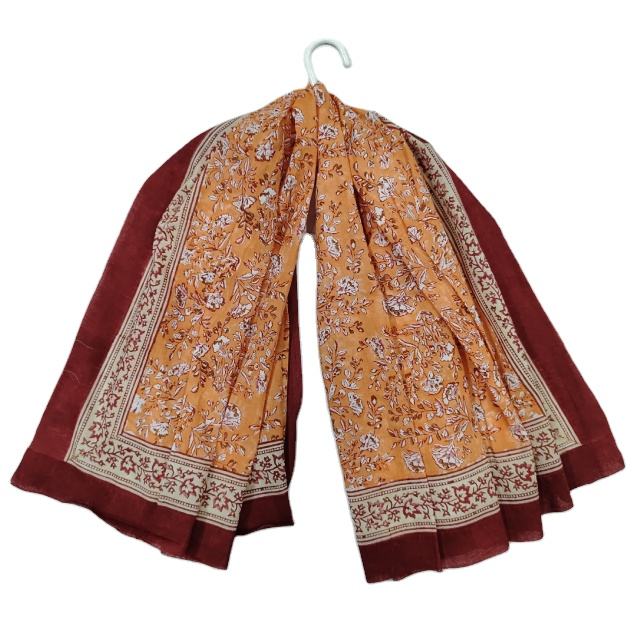 Offre Spéciale Tendance Motif Floral Voile Ethnique Foulards Châles Style Classique Main Bloc Imprimé Fabriqué en Inde En Gros