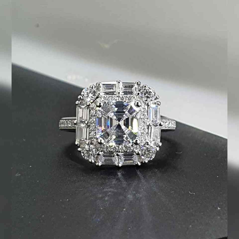 Offre Spéciale à la mode carré Asscher coupe luxe 14K/18K plaqué rhodium éblouissant bague en diamant bijoux en or fin femmes mariage classique