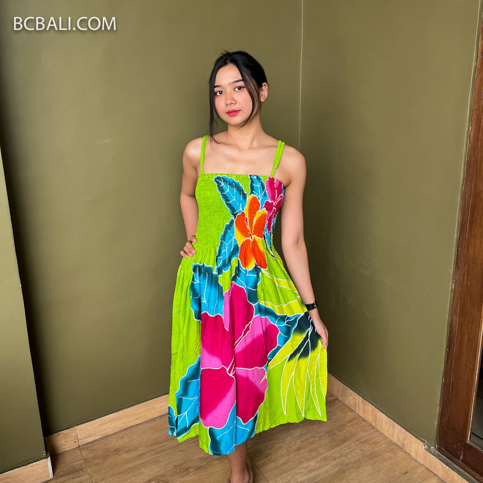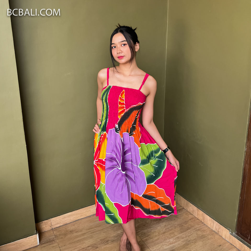 Hot Summer Sale Hand Painted Tropical Floral Midi Dress High Quality Rayon Free Size Plus Size Friendly for Asia Pacific Islands