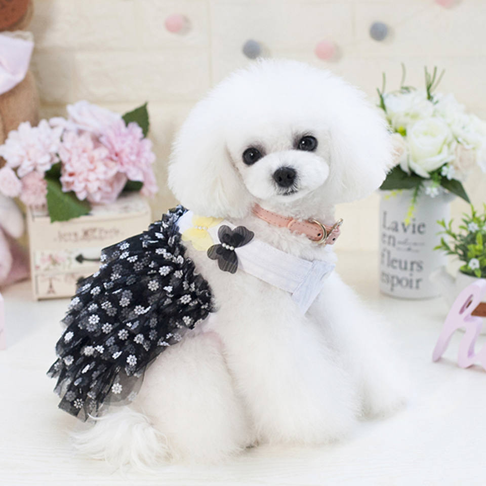 Offre Spéciale deux jupes à bretelles papillon mignon pour printemps été Teddy Bichon imprimé motif vêtements pour animaux de compagnie chien robe vêtements