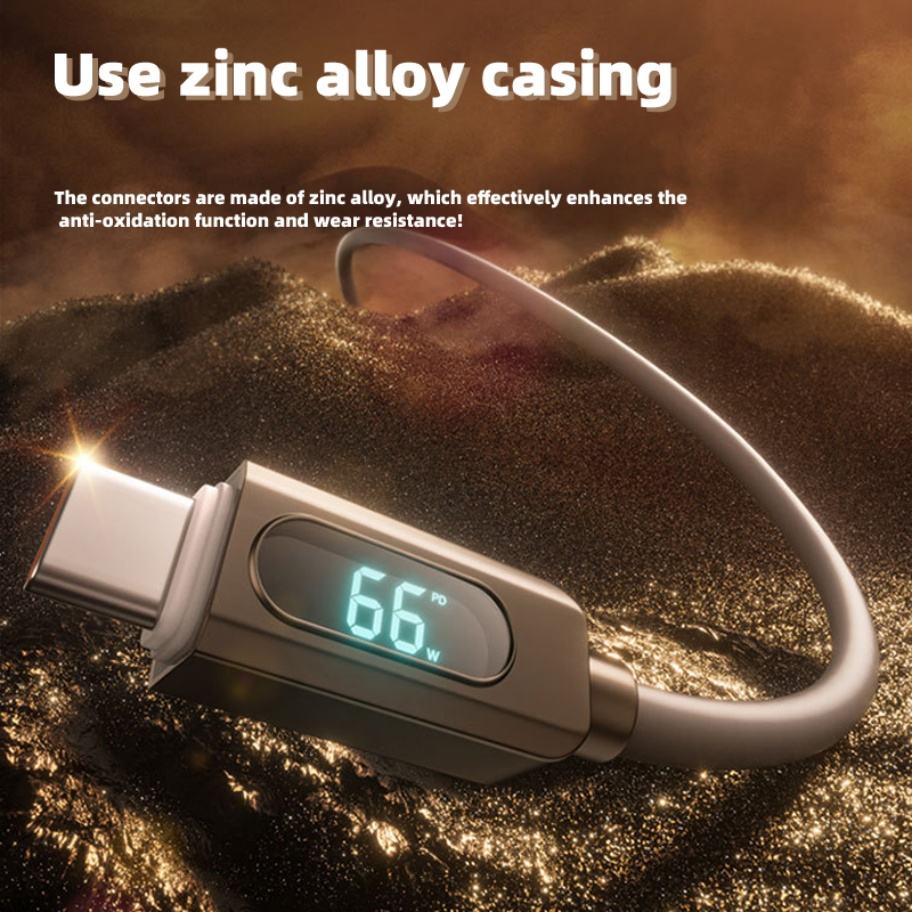 Câble de charge Type C vers Type C avec affichage numérique LED 66W, multifonctionnel pour téléphone portable - Vente flash