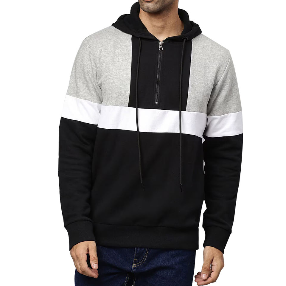Nom du produit:Sweat à capuche homme demi-zip à blocs de couleurs
