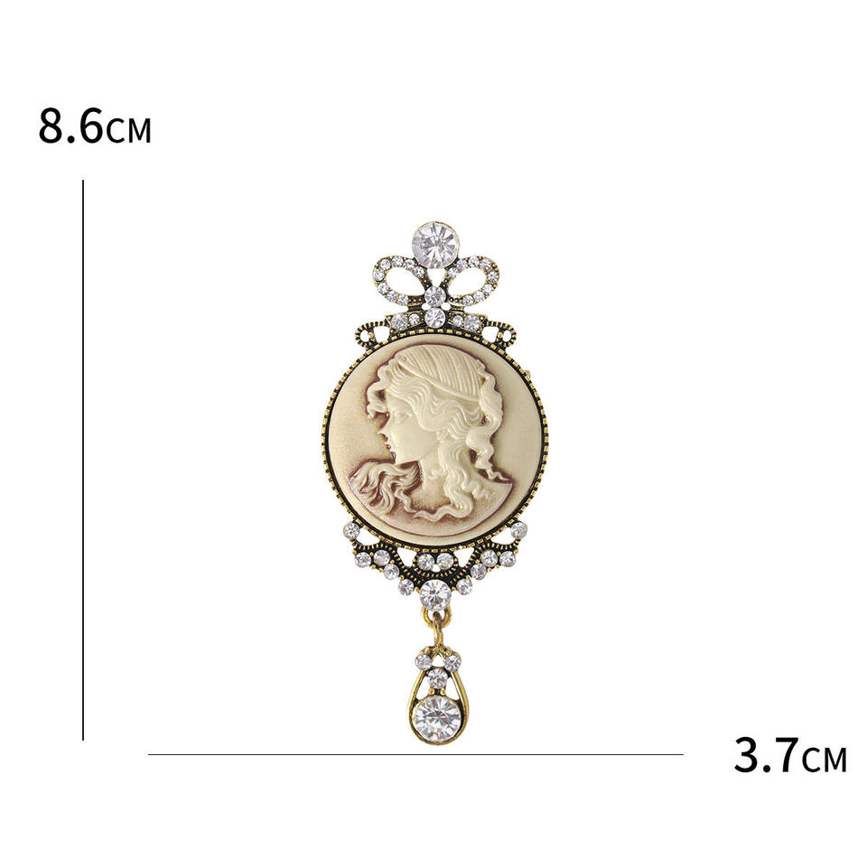 Broche pendentif vintage en strass, broche en alliage pour femmes, camée de beauté, broche pour mariage, cadeau pour enfants