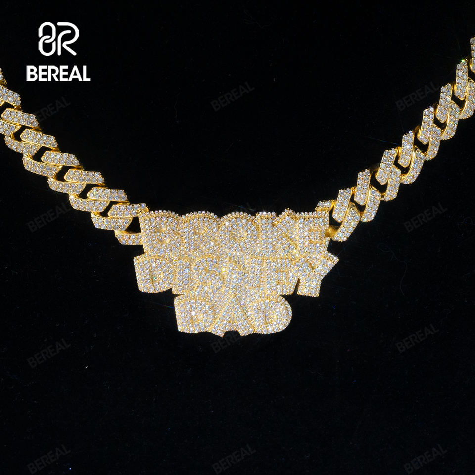 Vente flash Pendentif personnalisé en moissanite VVS, testeur de diamant, argent 925, coupe ronde, pendentif glacé avec nom, bijoux fins