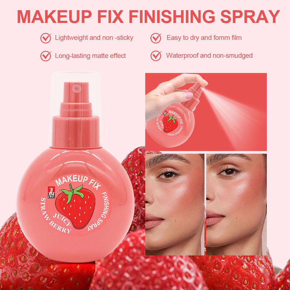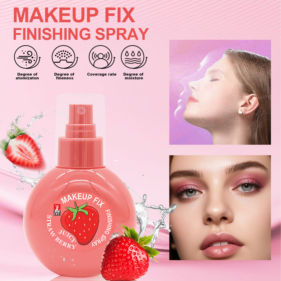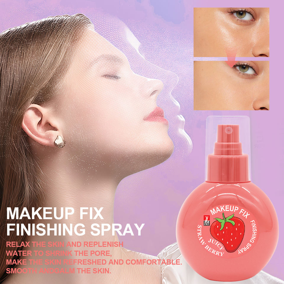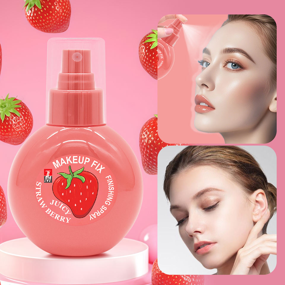 Vente flash, spray fixateur de maquillage hydratant longue durée à la saveur de fraise, à base d'huile minérale imperméable et régulatrice de sébum