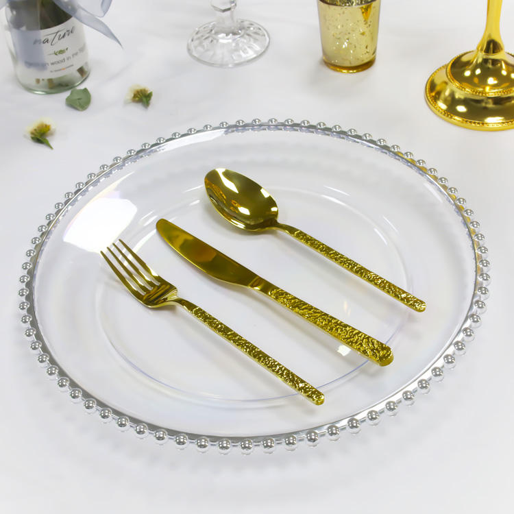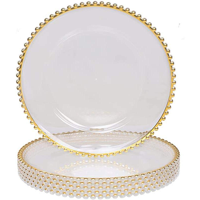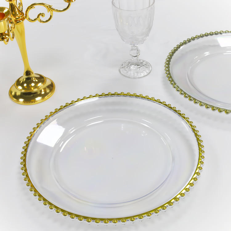 Nom du produit:Assiettes en plastique transparent avec bordure dorée