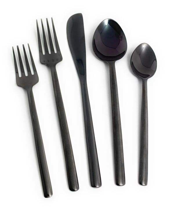Ensemble de couverts de mariage en vente chaude, ensemble de couverts en acier inoxydable 304, cuillère noire, fourchette, argenterie, finition polie miroir pour le dîner