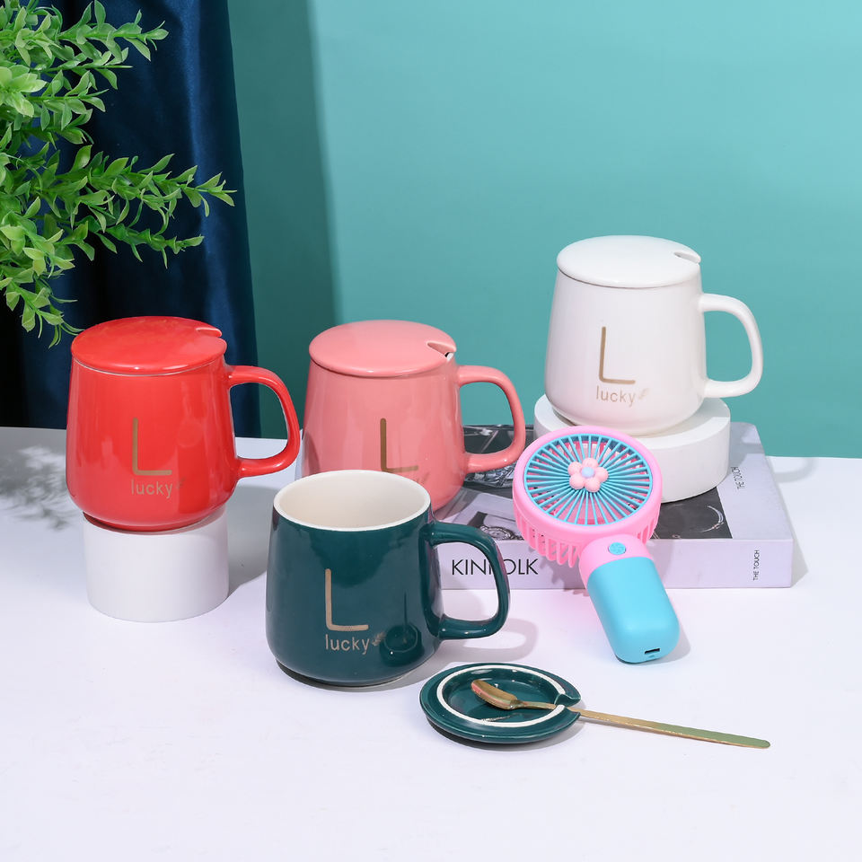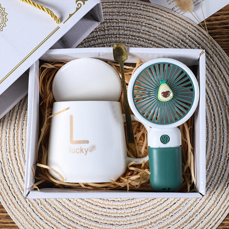 Souvenirs de mariage Offre Spéciale cadeau promotionnel logo d'entreprise personnalisé Mini ventilateur à main tasse en céramique coffret cadeau pour les invités cadeau de fête d'anniversaire