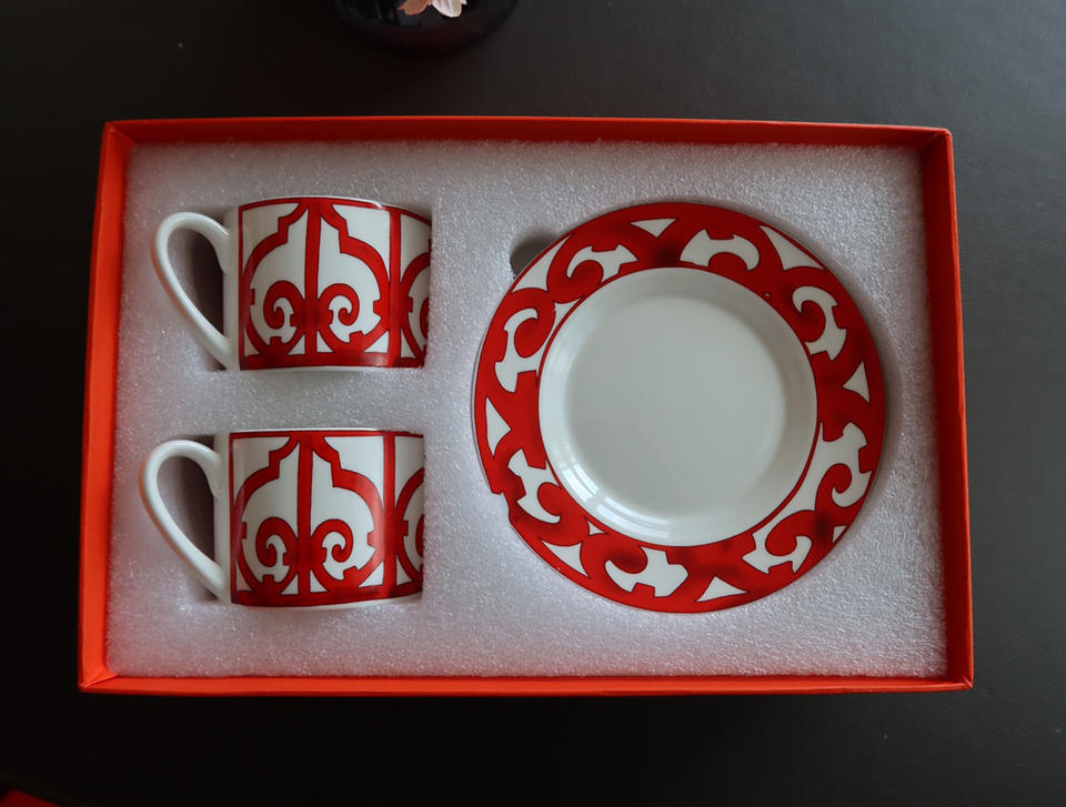 Vente flash : Service de table en porcelaine fine pour restaurant occidental, motif en fer forgé rouge, tasse à café et soucoupe, modèle de décoration de chambre