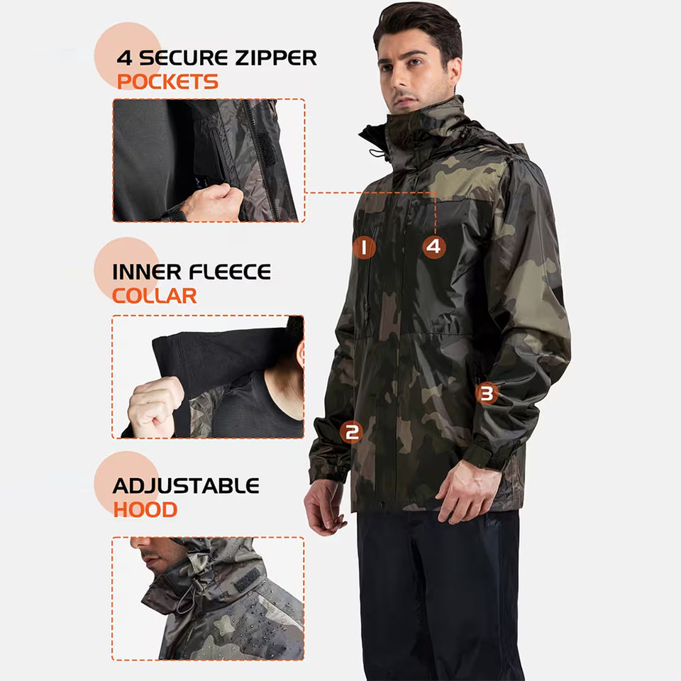 Ensemble coupe-vent d'hiver en toile pour adulte avec fermeture éclair, doublure polaire et capuche ajustable – Grande Vente