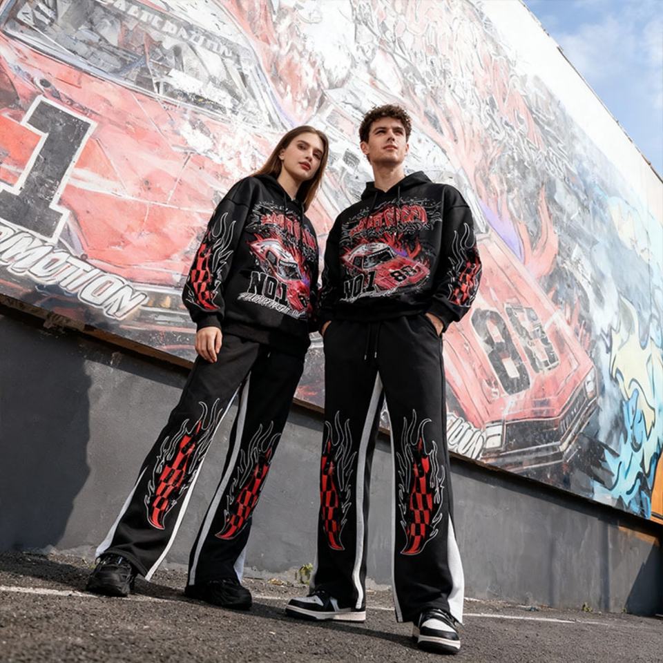 Vente Flash Hiver : Ensemble Survêtement Homme Personnalisé Style Street Racing, Hoodie Oversize et Pantalon de Jogging Imprimé Numérique Intégral pour Entraînement