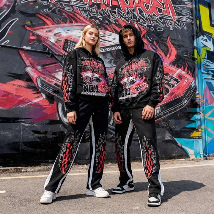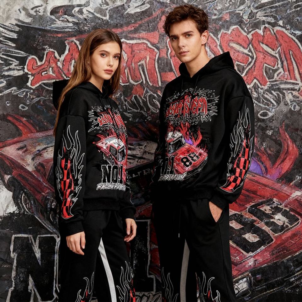 Numéro de Type:CUS251126- Racing Style Oversized Hoodie Set