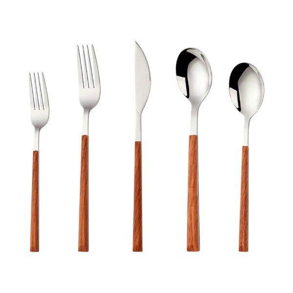Hot Sale Wooden Handle Knife Fork Spoon Set Stainless Steel Cutlery Golden Silverware Hotel Restaurant Flatware Set