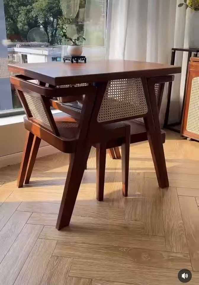 Chaise et Table de Salle à Manger Modernes en Bois et Rotin Tressé pour Intérieur et Extérieur, Idéales pour Cuisine, Jardin, Terrasse, Café, Restaurant – Offre Spéciale
