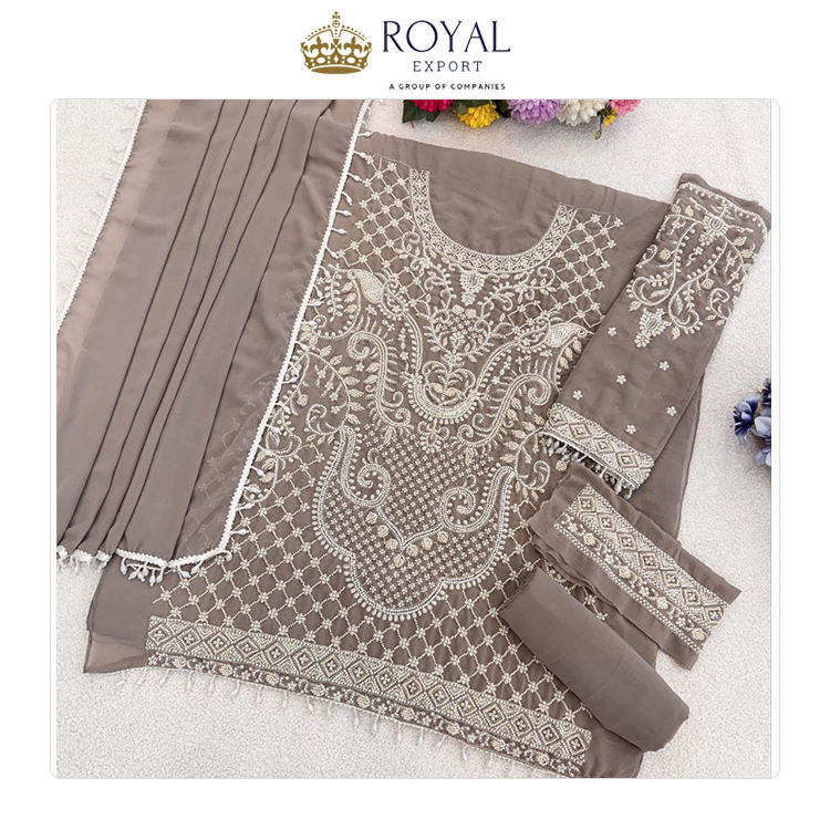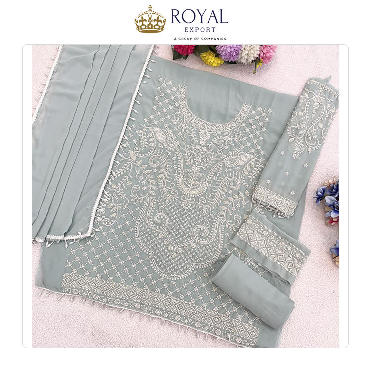 Collection ethnique de vêtements pakistanais de créateur en promotion : Ensemble de costume en Georgette avec broderie et travail de sequins
