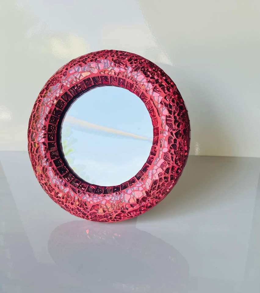 Offre Spéciale : Miroir Rond de 8 Pouces Fait Main en Verre Craquelé avec Bordure Mosaïque Brillante pour Table Console et Espace de Vie