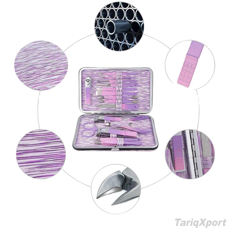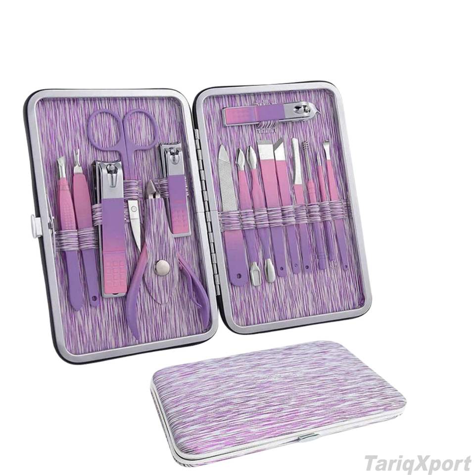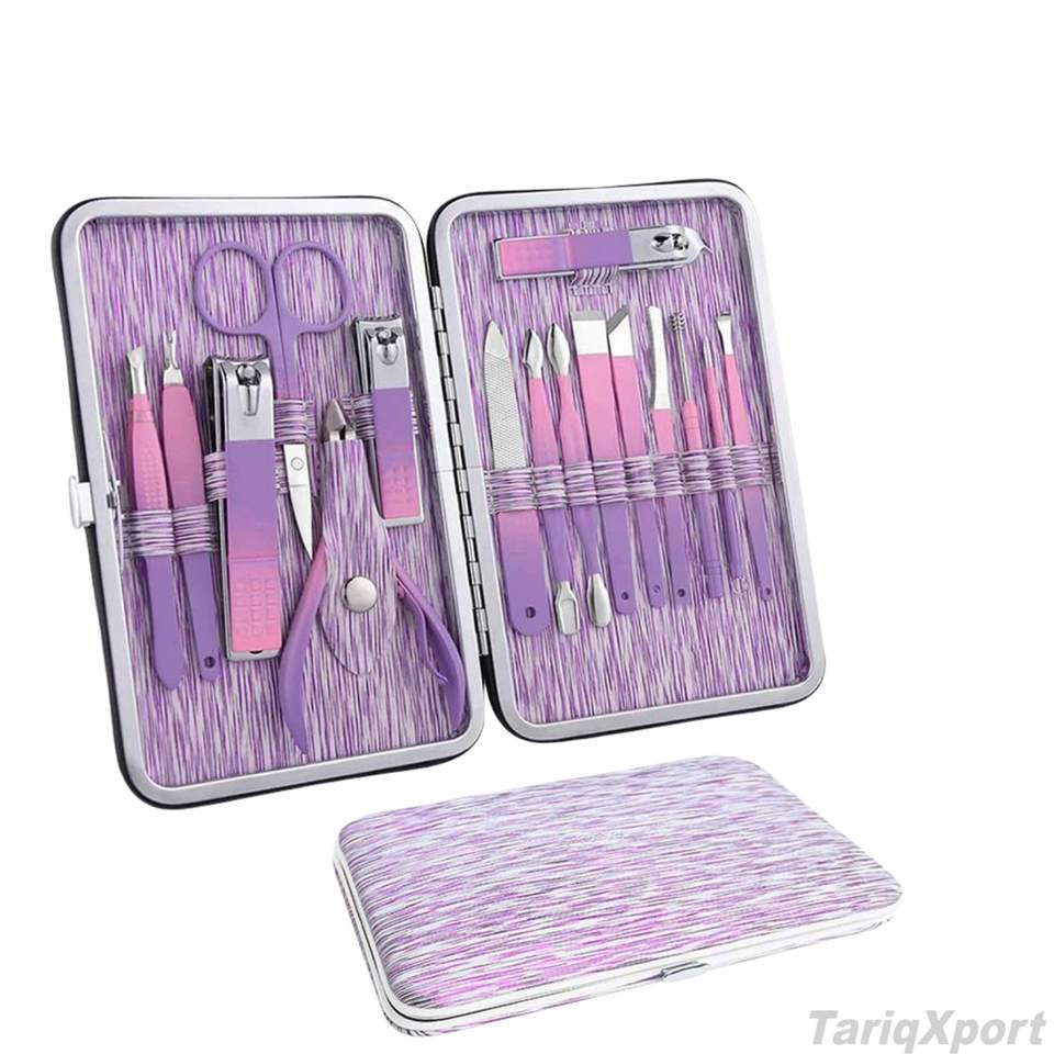 Offre Spéciale : Kit de Manucure Professionnel 7-en-1 de Luxe en Acier Inoxydable (15 Pièces) avec Coupe-Ongles et Coupe-Cuticules, Logo et Étui Personnalisables