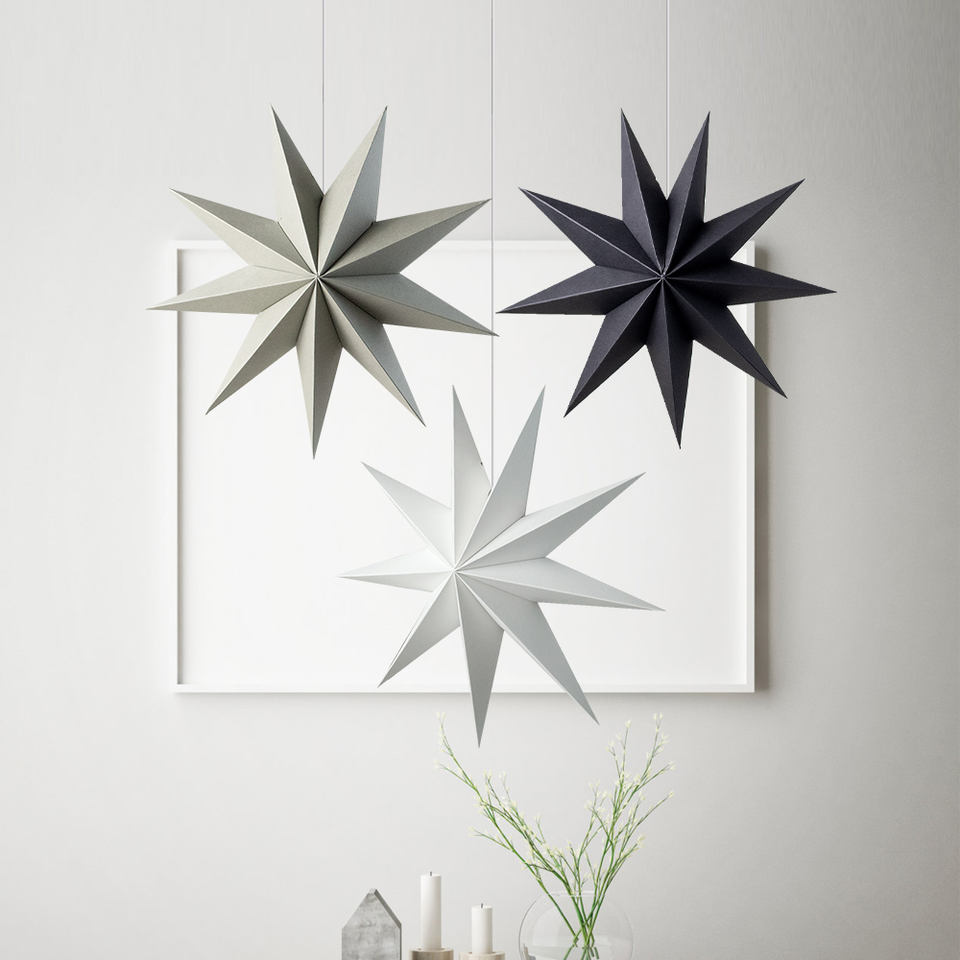 Offres Spéciales 30CM fait à la main découpé à neuf branches étoile ornements de noël suspendus étoiles pendentif floqué tissu étoile lanterne anniversaire