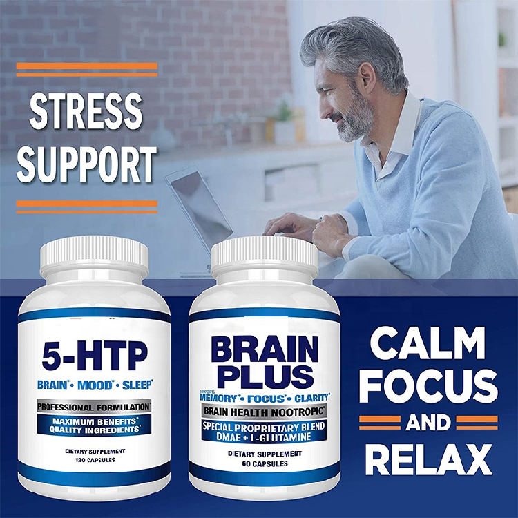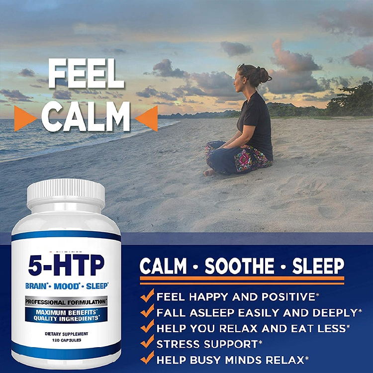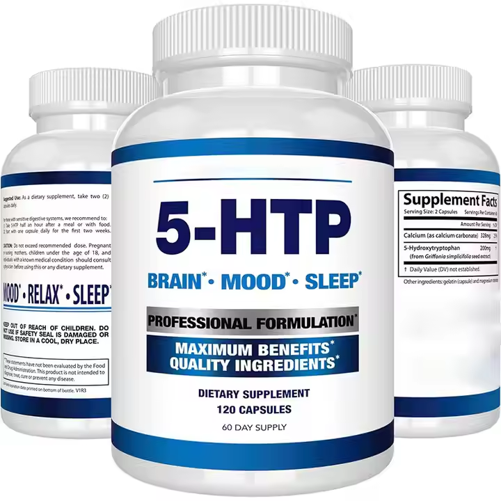 Hot Sales 5-HTP Capsules Plus Serotonin Synthesizers and Cofactor B6 for Improved Serotonin Conversion