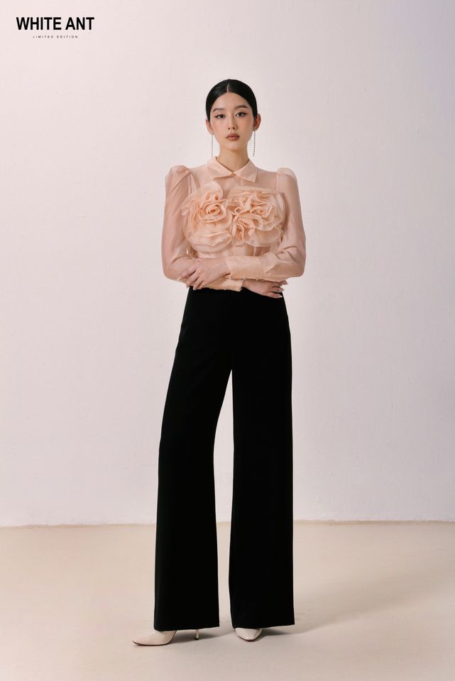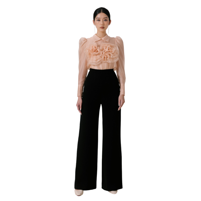 Hot Sales Black Wide Leg Women's Pants & Trousers MILCAH WIDE LEG TROUSERS 85% Polyester 15% Spandex Formal Womens Clothing