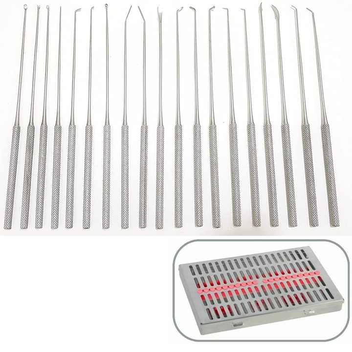 Offres Spéciales CE Approuvé Rhoton Micro Dissecteur Kit Ensemble Droit avec Rack (19 pcs) Instruments Chirurgicaux
