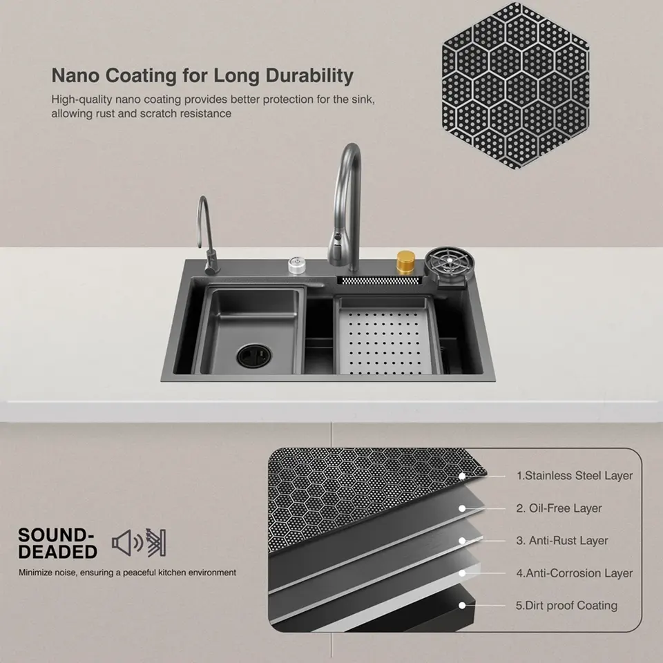 Évier de cuisine rectangulaire en acier inoxydable nano fait main, design personnalisé, avec robinet – Offre spéciale