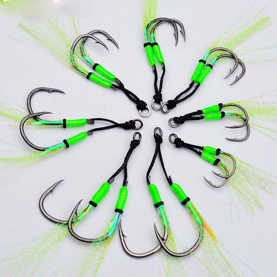 Hameçons Offres Spéciales à double assistance avec jupe en peau de poisson pour la pêche en mer hameçons en métal