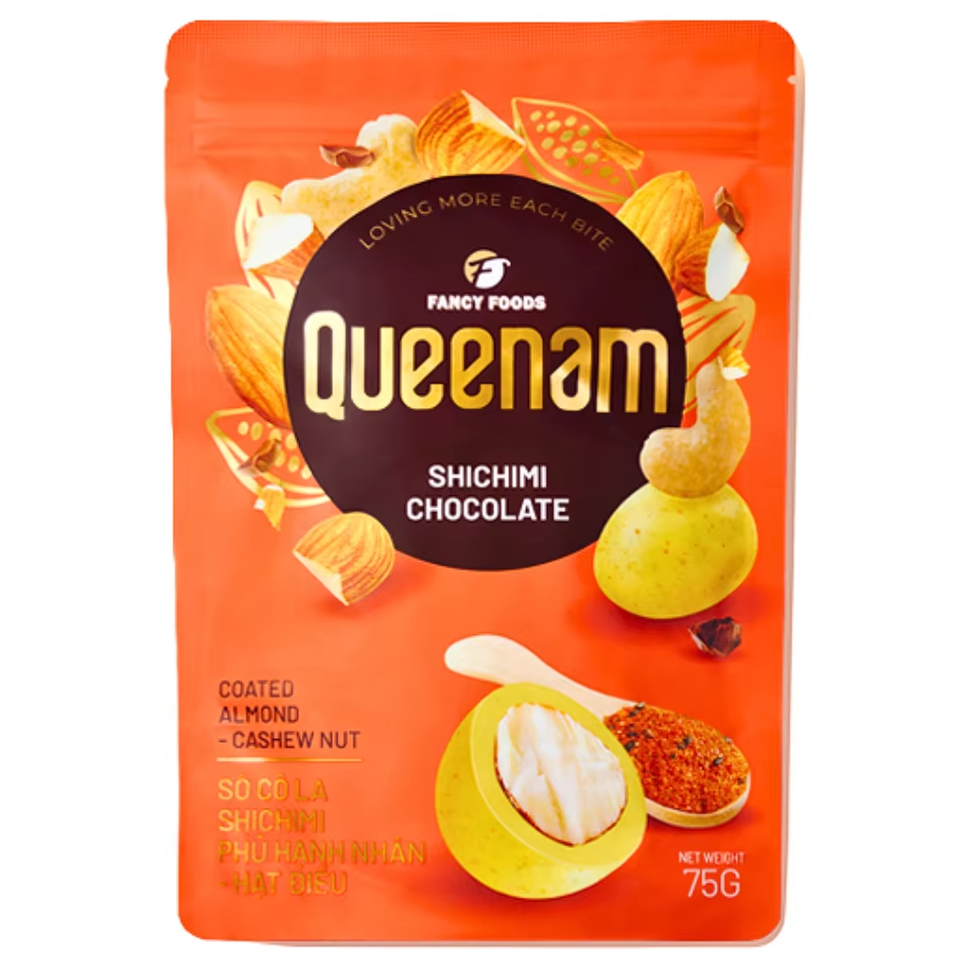 Contenu :Noix de cajou et amandes enrobées de chocolat Shichimi