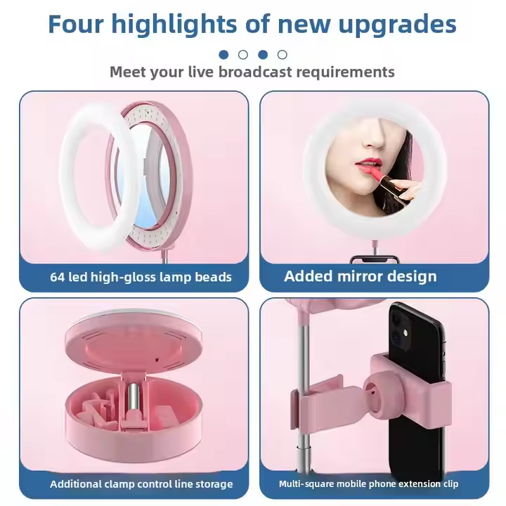 Miroir de lumière d'anneau d'usb pliable de Offres Spéciales avec le support de support et de téléphone