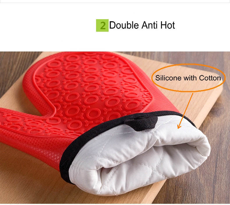 Hot Sales Food Grade Anti Slip Heat Resistant Pot Holders Silicone Oven Glove Quilted Liner Customized Logo Silicone Grip Mitten