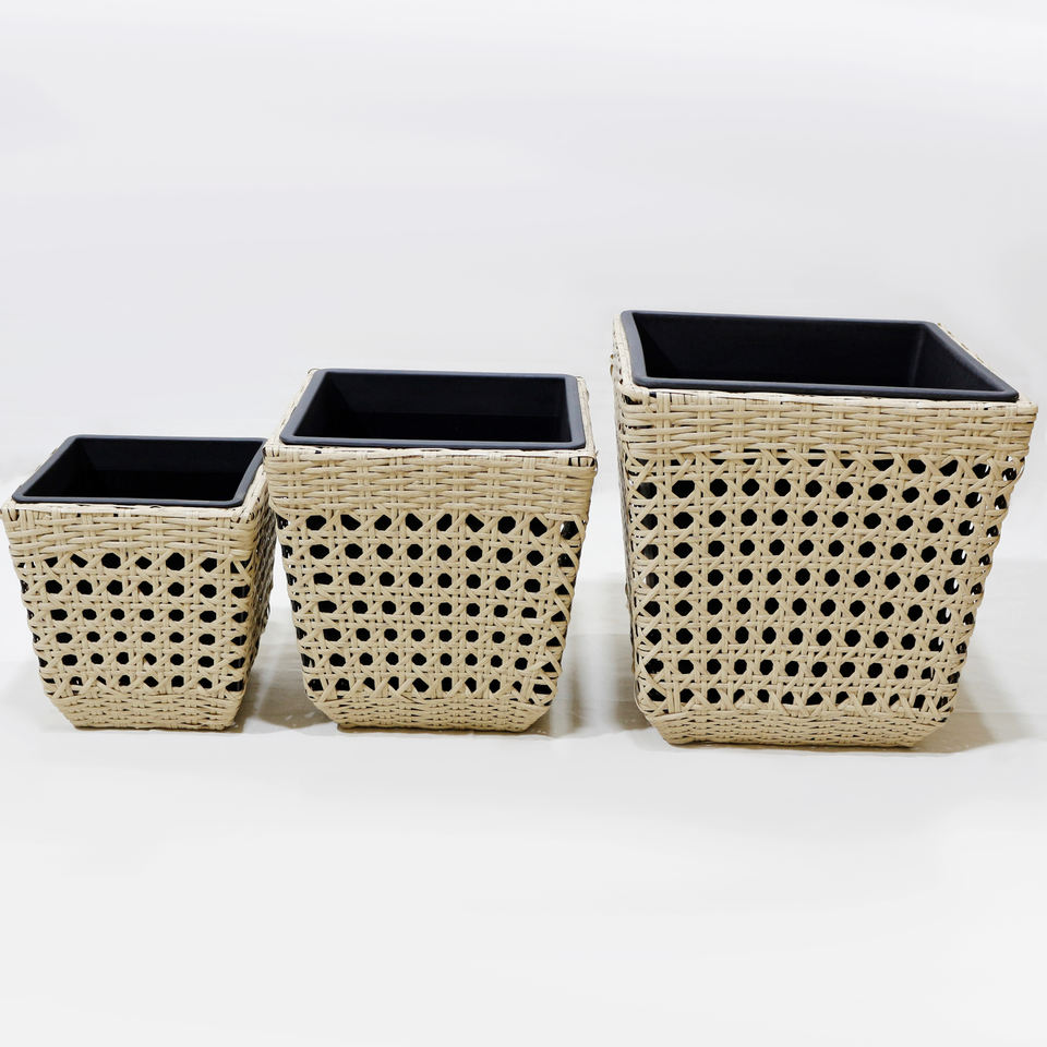 Offre Spéciale : Ensemble de Jardinières Minimalistes en Rotin Synthétique Tressé – Pot de Jardin Carré avec Doublure en Plastique