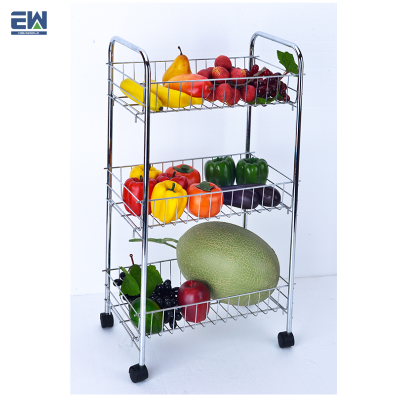 Chariot de service de rangement de cuisine moderne Offres Spéciales avec roues légumes et fruits support de maintien en fil de fer à 3 couches