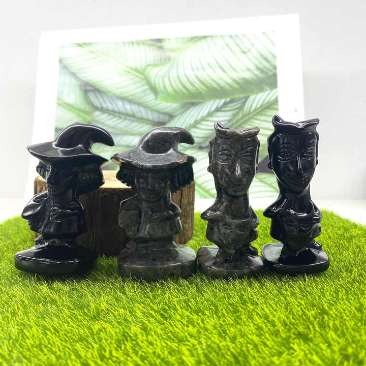 Ventes chaudes : Pierre de guérison sculptée à la main en obsidienne et Yooperlite, motif 'Nuit de Terreur', pour cadeau d'Halloween