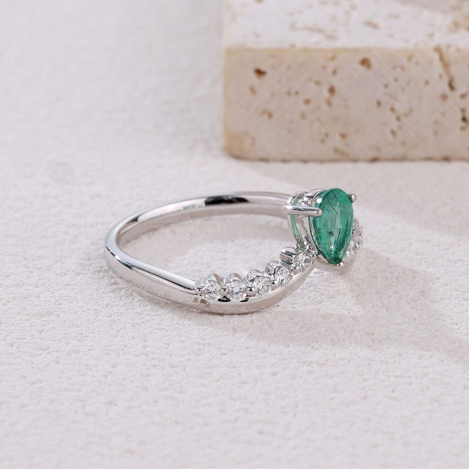 Offres Spéciales véritable or 18 carats plaqué rhodium émeraude conception unique bague de fiançailles cadeau d'anniversaire de mariage pour petite amie