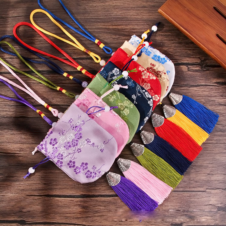 Offres Spéciales recyclable petite pochette vide fleur broderie cordon Sachet gland pendentif bijoux stockage maison voiture suspendus décor