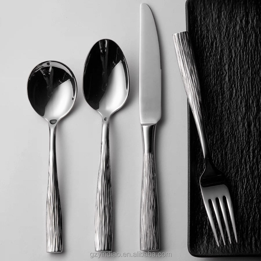 Ventes chaudes, restaurant, ensemble de couverts en argent bon marché, cuillères à dîner, fourchettes et couteaux, acier inoxydable, polissage miroir, occasion de mariage