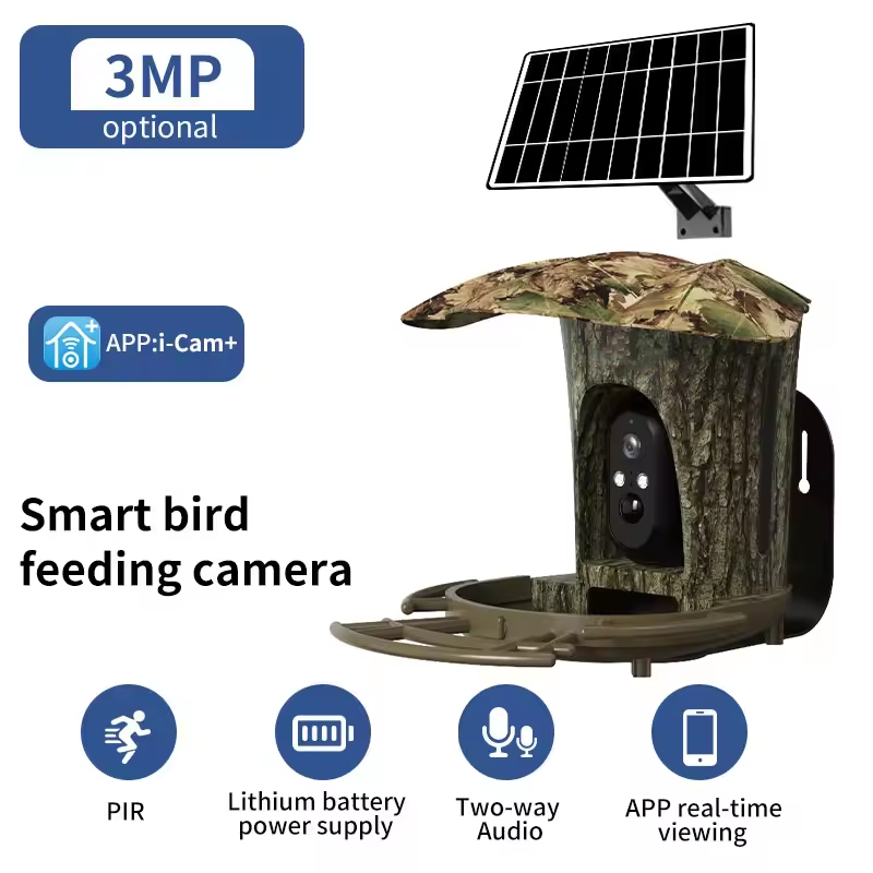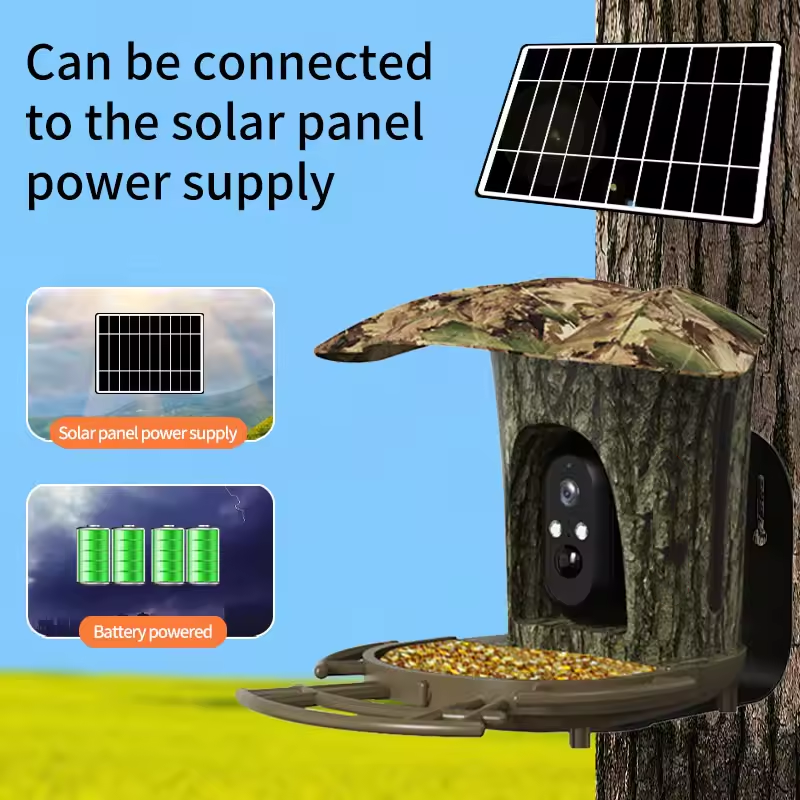 Offres Spéciales batterie d'énergie solaire Ai caméra intelligente de mangeoire d'oiseaux caméra de batterie de reconnaissance d'oiseau à distance sans fil HD caméras solaires