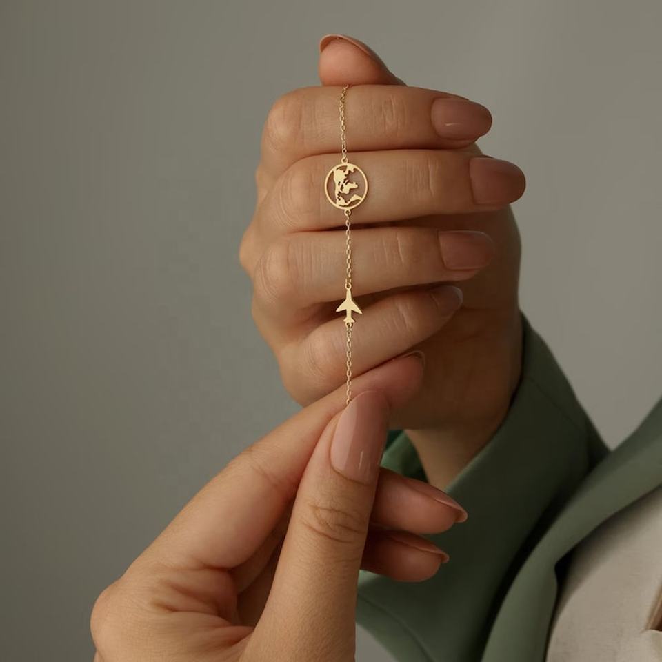 Offres Spéciales Acier Inoxydable Terre Carte Avion Charme Voyage Le Monde Bracelet Terre Et Avion Voyageur Bracelet Terre Bracelet