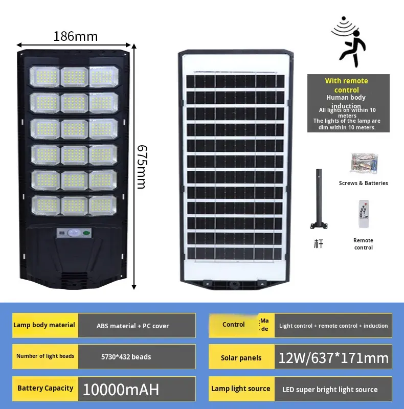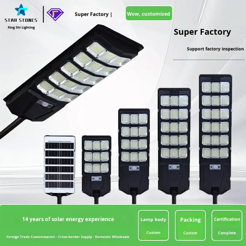 Ventes chaudes Lampadaire tout-en-un 100W 200W 300W 400W Étanche Extérieur Route Ip65 Lampadaires solaires LED intégrés