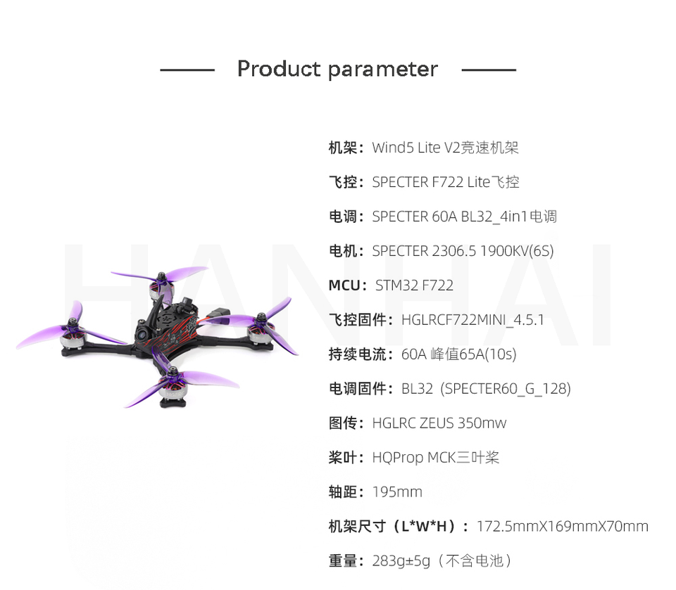 Offres Spéciales Wind5 Lite V2 5 pouces Positive X Racing FPV Drone Frame Kits Empattement 195mm FPV Drone Racing Machine Racks en Chine