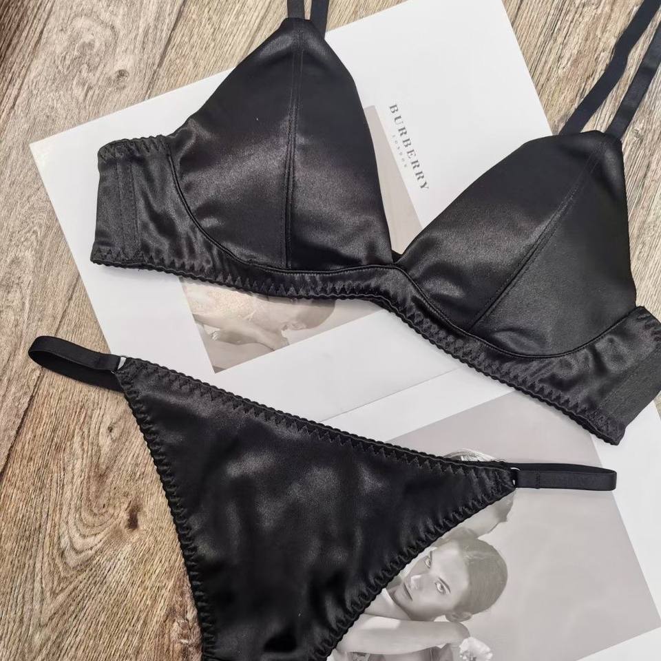 Ensemble de lingerie en satin chaud, soutien-gorge triangle de haute qualité, confortable, sans armatures