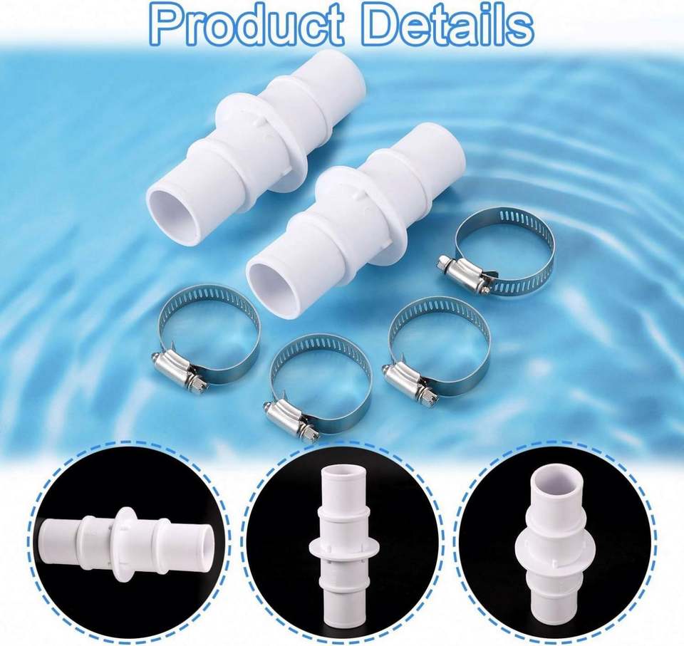 Hot Sell 1-1/4" or 1-1/2" Hose Connector Coupling for Swimming Pool 2pcs Pool Hose Connectors with 4 Hose Clamps