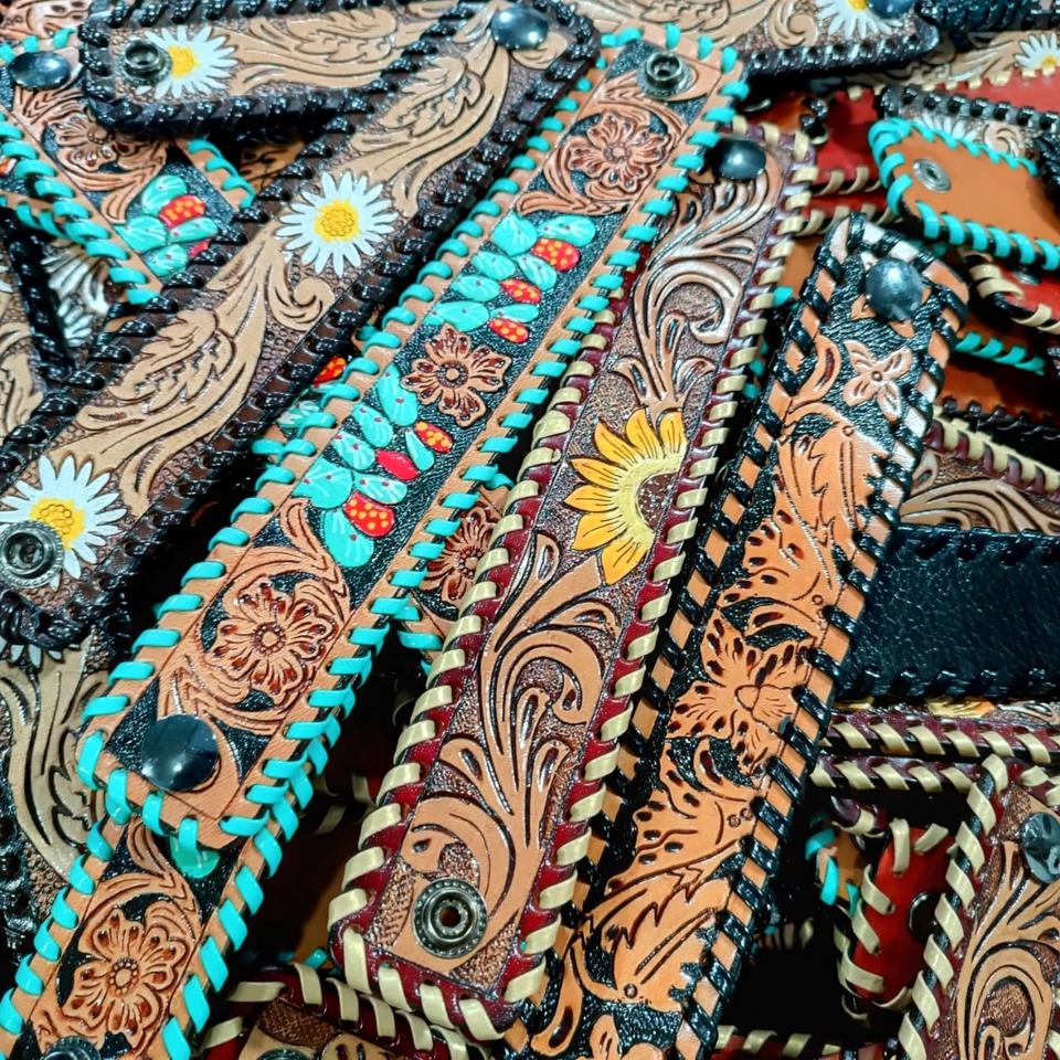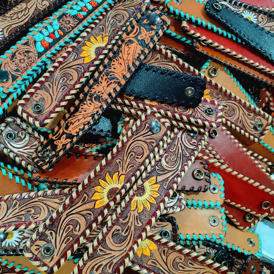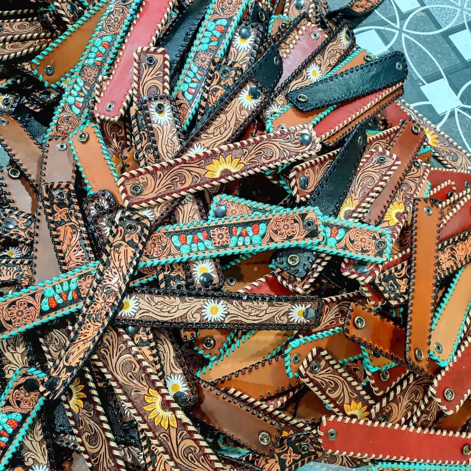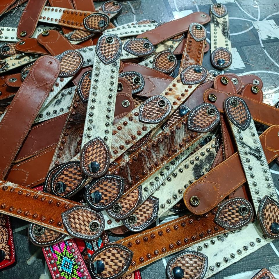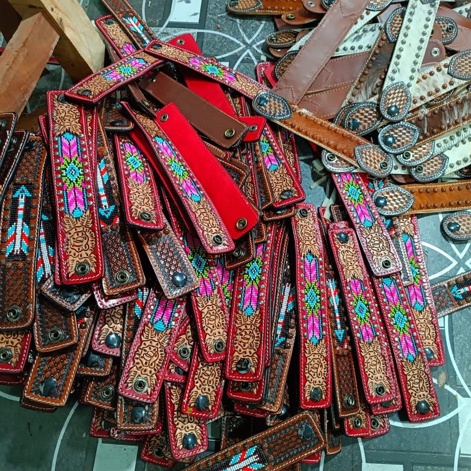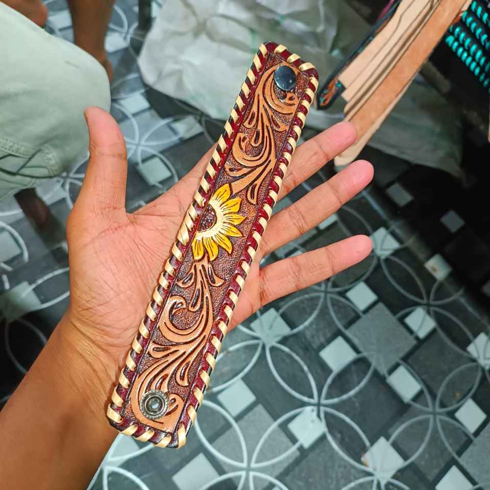 Hot Sell 2024 Leather Made Western Tooled Cuff Bracelets With Buck Stitch Design for Unisex Usable Bracelets by Indian Exporters