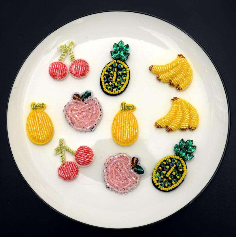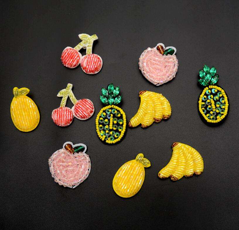 Patchs thermocollants en chenille brodés à la main avec perles, motifs fruits, pour vêtements, sacs et accessoires – Vente chaude à prix abordable