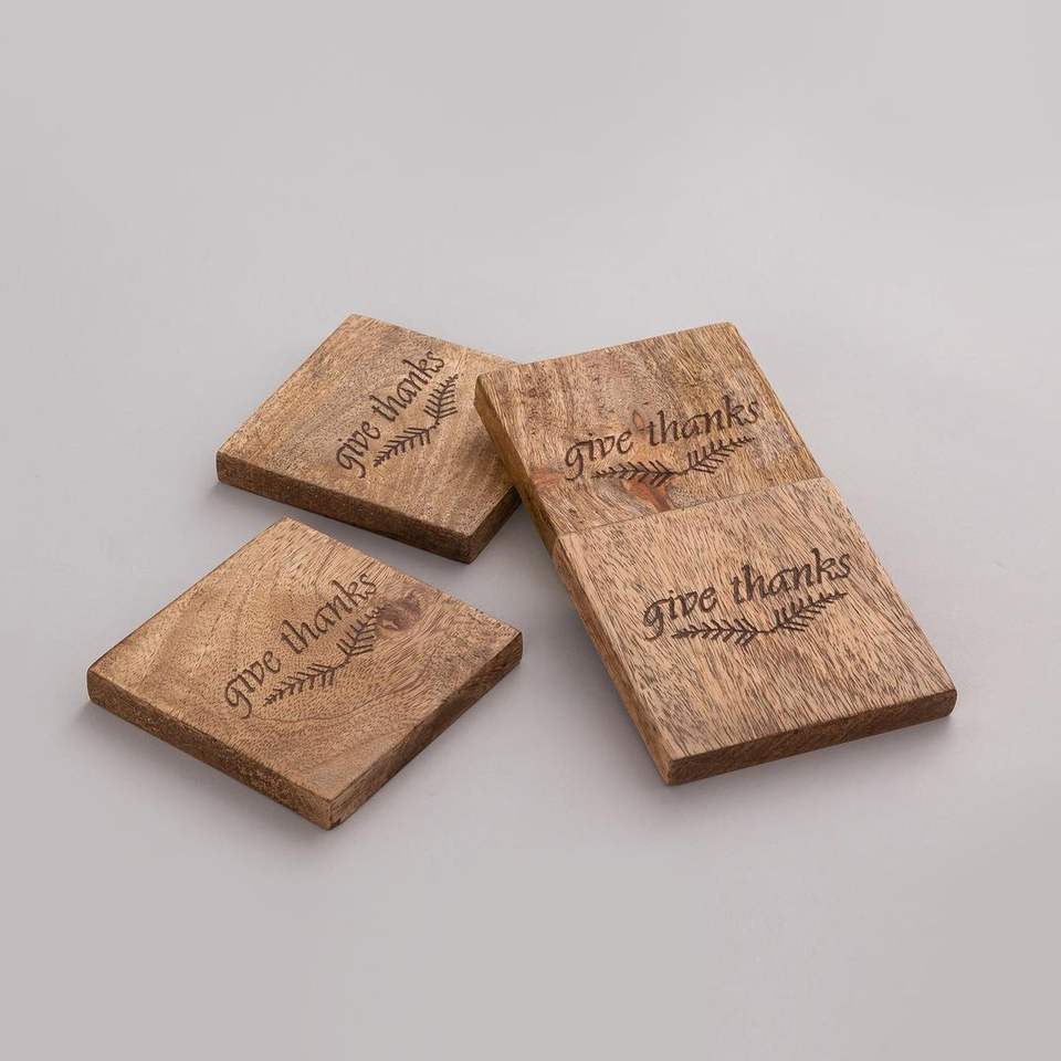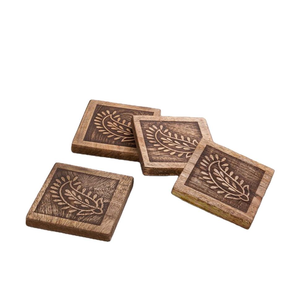 Sous-verre de tasse en bois créatif de vente chaude pour le cadeau avec la conception unique gravée