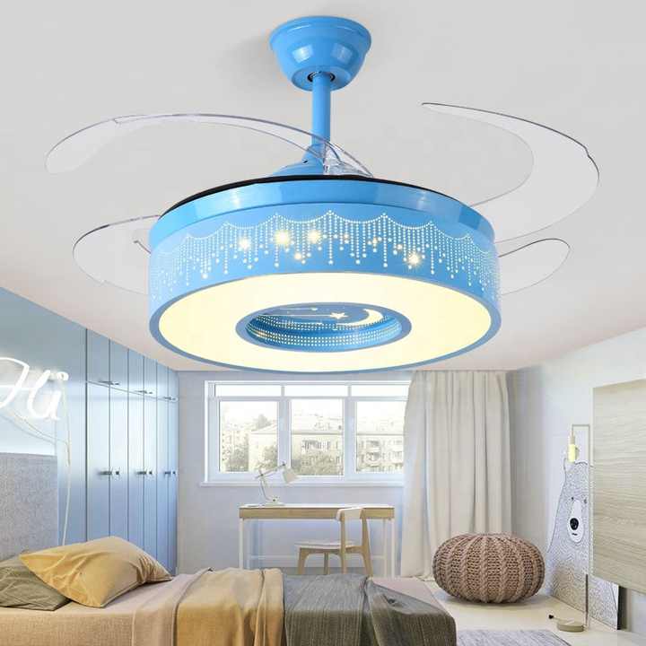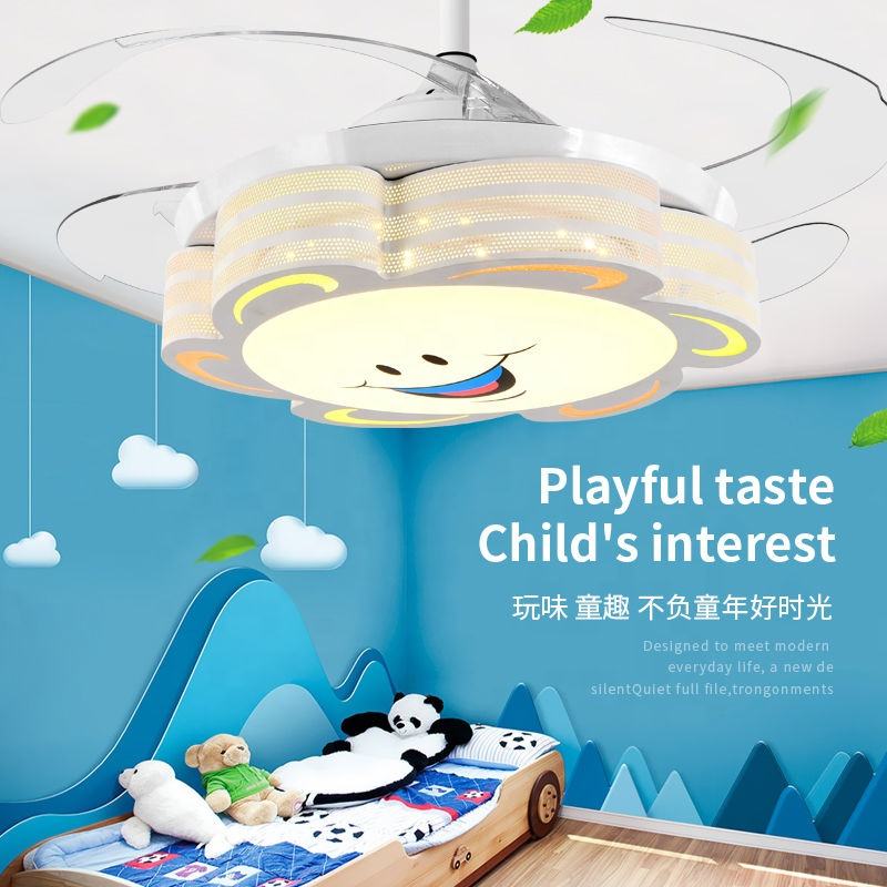 Vente chaude Ventilateur de plafond lumineux personnalisé de 42 pouces pour appareils électroménagers rose bleu Doraemon coloré avec lampe