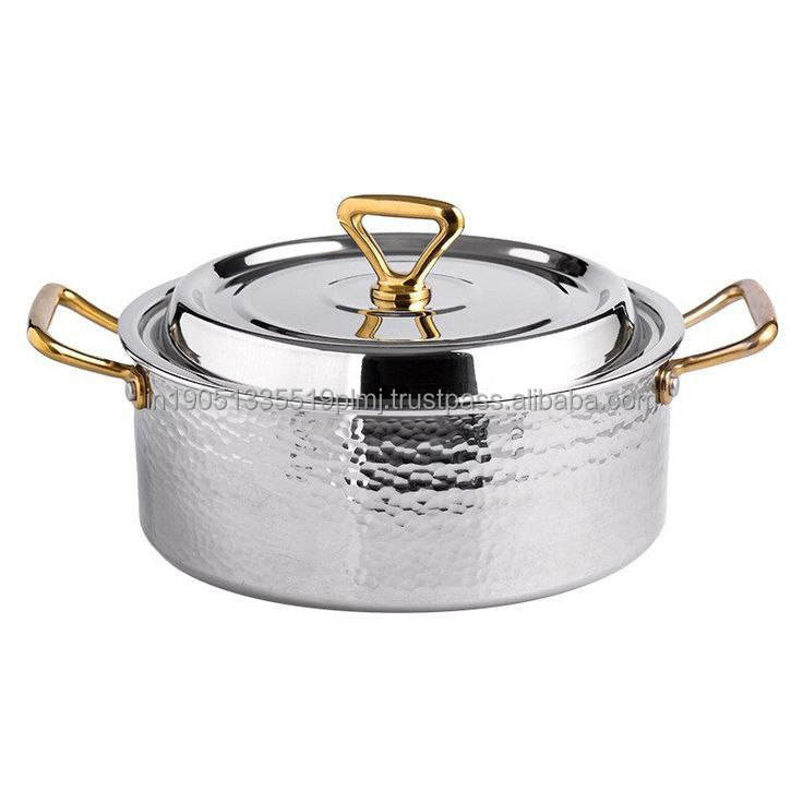 Casserole de service d'aliments faite à la main de haute qualité martelée en métal personnalisée en vente chaude chauffe-plats de luxe pour hôtel et restaurant d'Inde