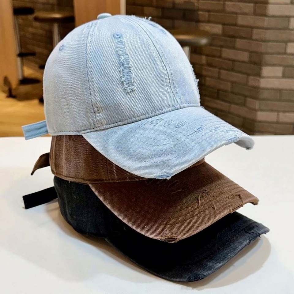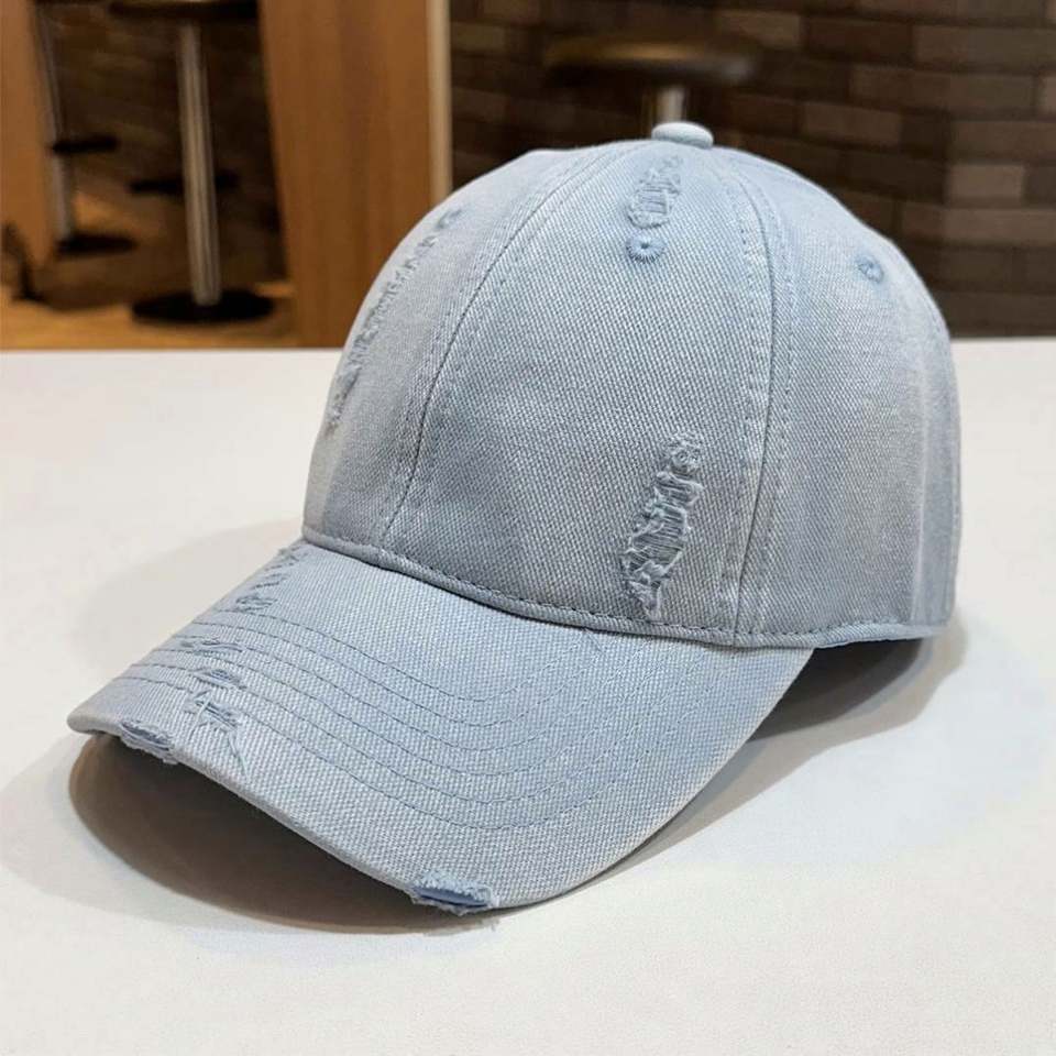 Casquette de baseball déchirée tendance pour hommes et femmes, en jean souple à visière incurvée – Nouvelle collection